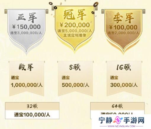 4、赛事名次奖励:四强-64强都有对应的通宝可以拿,三强额外奖励现金