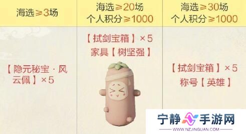 ②海选≥20场、个人积分≥1000:【拭剑宝箱】x5、家具【树坚强】