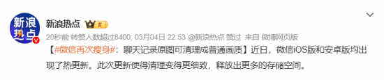 微信再次瘦身登热搜 网友仍不满足:去广告修Bug!