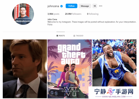 约翰·塞纳分享GTA6海报 玩家:暗示自己会参与游戏?