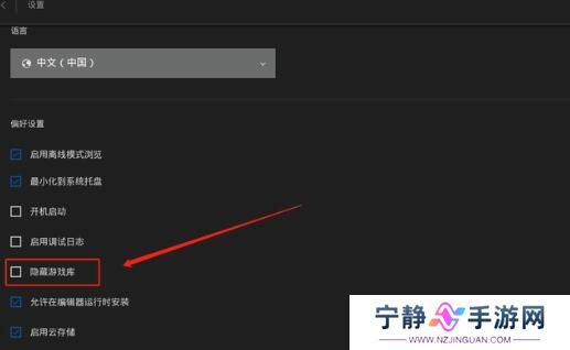 4、在默认情况下,游戏库都是隐藏状态,可以先勾选取消,这样才能够看到我们所有的游戏库。