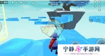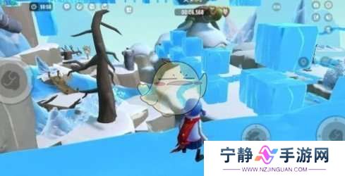 1、宝箱一:进入关卡后,大家只需一边走一边侧着跳就能到达冰台阶上面。