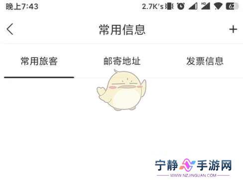 3、在常用信息界面中选择常用旅客栏,然后点击界面右上角的“+”进入常用旅客界面。