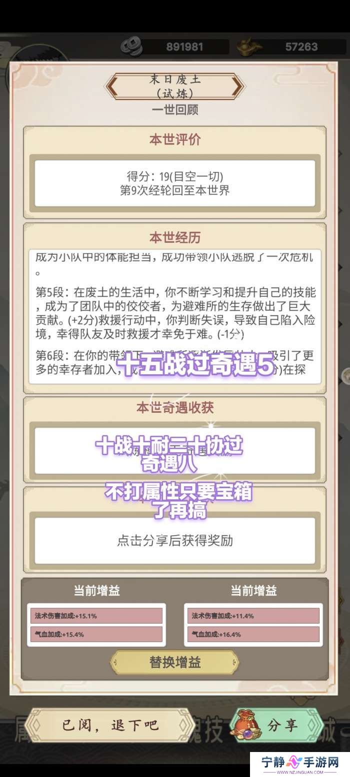 在《穿越万世轮回》这里玩家可以体验人生模拟,超过世界可以选择,玩家可以自由的在奇幻的世界中进行穿越冒险。下面是“星满楼-小冉”给大家带来的《穿越万世轮回》轮回世界二奇遇宝箱加点推荐,感兴趣的小伙伴们一起来看看吧。