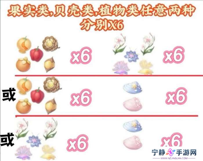 蓝色宴席白牛配方:果实/植物/贝壳,任意2种分别×6。