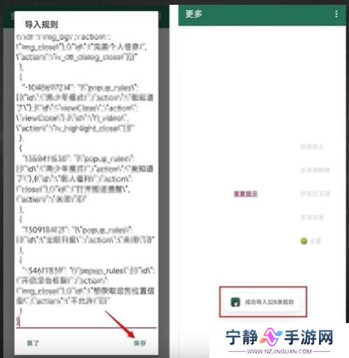 4、将复制的新规则填入到输入框中,之后保存,导入成功软件会提示。