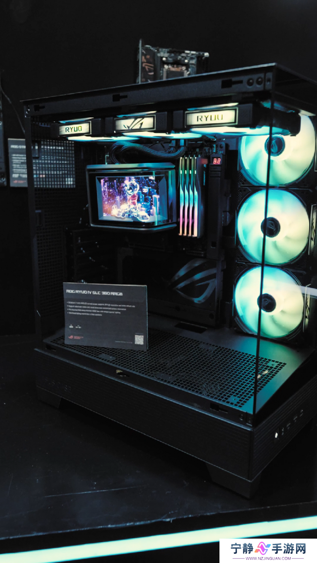 ROG RYUO龙王4代360 ARGB水冷散热器,作为ROG家族的最新力作,不仅继承了前代产品的优秀基因,更在颜值与性能上实现了全面升级。其搭载6.7寸AMOLED曲面屏,不仅支持2K高分辨率和60Hz的高刷新率,还具备裸眼3D视频呈现能力,无论是从正面还是侧面观看,都能带来清晰、流畅且极具立体感的视觉效果。这样的设计不仅满足了玩家对高颜值的追求,更为机箱内部增添了一抹未来科技的气息。更令人赞叹的是,这款水冷散热器的曲面屏还支持自定义系统参数显示功能。玩家可以根据自己的需求,将CPU温度、风扇转速等关键信息实时呈现在屏幕上,随时掌握电脑的运行状态。这种兼顾颜值与实用性的设计,成功的吸引了大量玩家的关注。