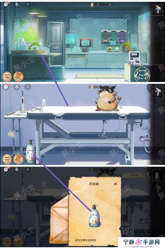 7.点击左侧桌子,拾取地上的【沐浴露】