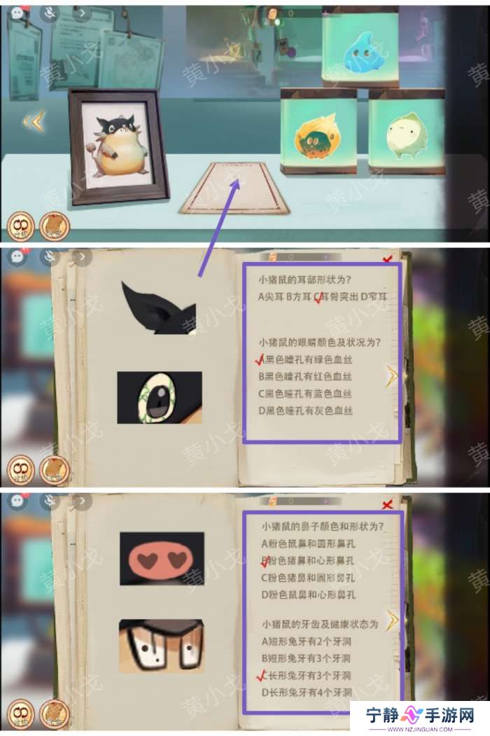 5.点击桌子上的调查报告,根据九个观察点判断小猪鼠身体情况(CABCCBCDC)