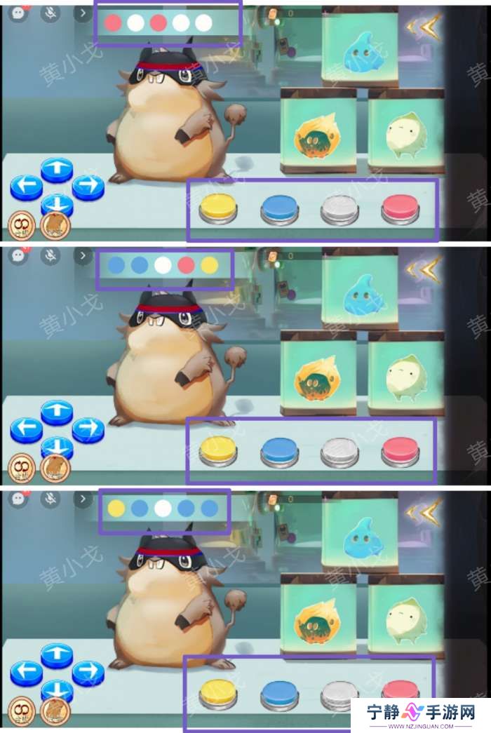 19.点击桌子,根据小猪鼠头上的箭头及颜色,按照顺序点击完成跳舞
