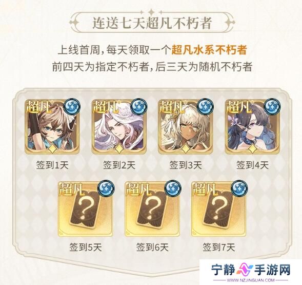 1、连送七天超凡不朽者,前四天为指定不朽者,后三天为随机不朽者。