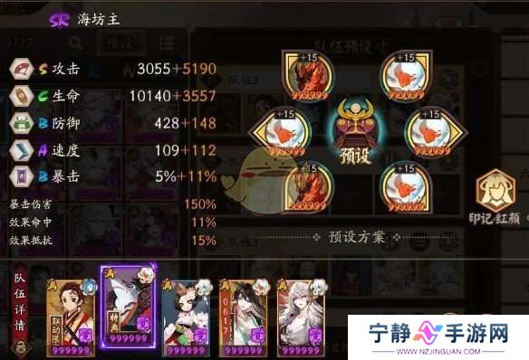 水系式神*3,2钓瓶火+1火灵,速攻攻,指标攻击,印记选红颜,强身,借力