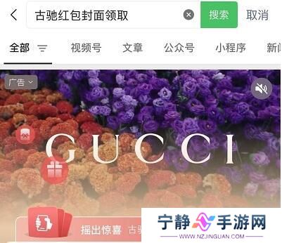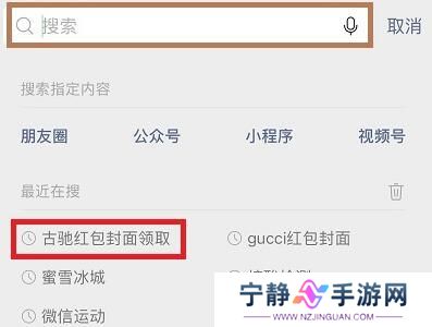 1、首先进入微信,再输入红包名,比如“古驰红包封面领取”。
