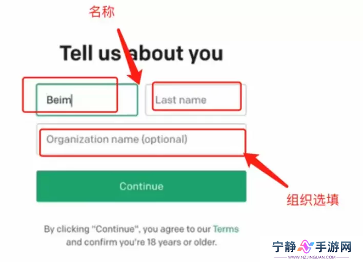 7、填写名和姓,下方的组织选填。