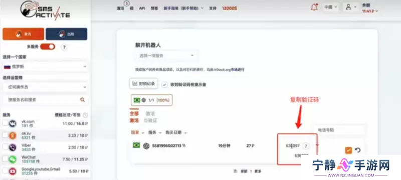 13、在虚拟号码网站可以看到验证码,复制。