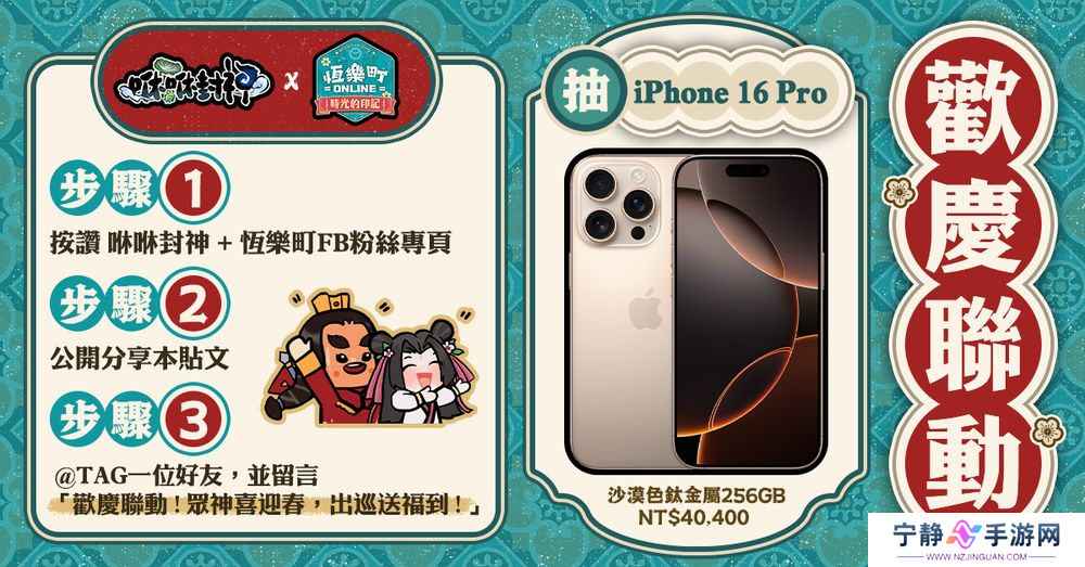 除了游戏内的多项庆典活动,官方为庆祝与《恒乐町 Online》联名,游戏粉丝团也加码举办豪华好礼抽奖活动,将送出 iPhone16 Pro 256G 以及海量限定虚宝等超值大奖!想了解更多游戏资讯、各种好康福利敬请持续锁定相关新闻与官方粉丝团。