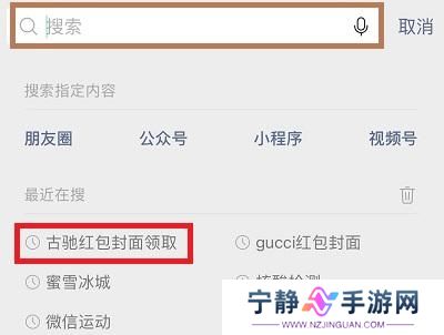 1、大家先进入微信,然后输入红包名,比如“古驰红包封面领取”。
