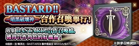 活动期间内举行可获得合作纪念登入奖励、以及可在合作限定活动版灵气之门『与绝世美颜的主角邂逅』中获得「BASTARD!! 合作召唤档」来游玩的召唤。