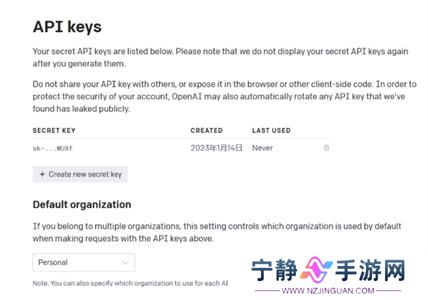 2、之后切换到api key选项,根据这里的提示新建一个api key并且保存到本地。