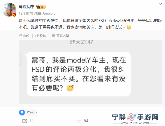 陈震称当前特斯拉中国FSD隐患太多:6.4万不值得买!
